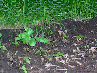 I enjoy weeding because I can see progress. My garden is divided into small sections, set apart by my stepping “stones” made from old deck and fence pieces. I set a goal of weeding one section at a time. When that’s done, I can quit weeding or choose to finish another section. This is a managable goal; I feel productive when I can see the results in one part of the plot. It spares me the frustration of not “finishing” the whole thing, which is of course an impossible goal. Today I chose one triangular section of the garden and weeded out the many mini maples that flew in from the lot behind ours. If I ever abandon this small plot of ground behind my garage, I predict the mini maples will take over, leaving room for a blanket of clover underneath. But for now, look out maples! I have garden gloves and I know how to use them. Bwahahahaha!