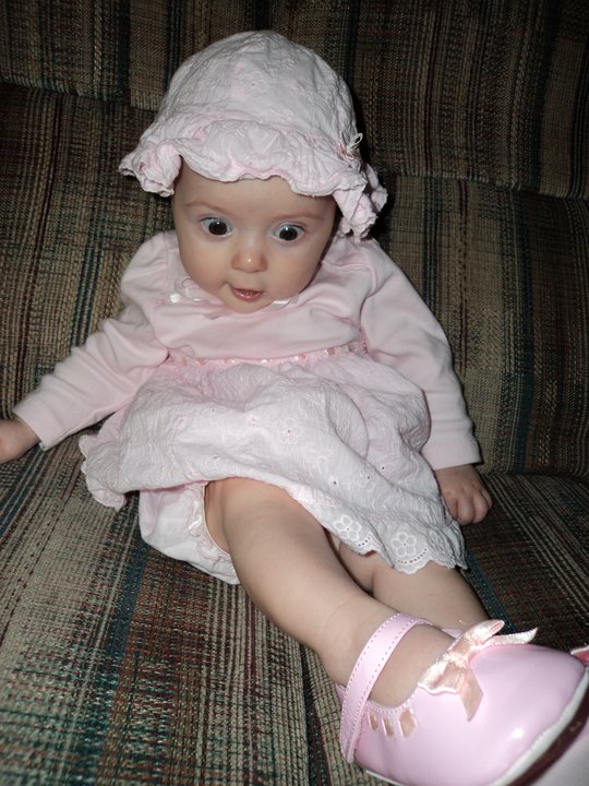 Is this not the cutest expression ever? Readers, I challenge you; give me a caption for this photo. Leave it in the comments. All captions must be as adorable as she is, or at least as cute as the shoes. Got it? Go!