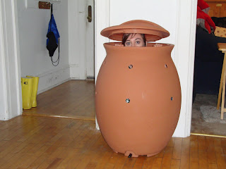 My new composter is smaller and cuter than my big beautiful bin. It has some nice features, too. This composter has a base and an insert to keep the solids off the bottom and let the liquids, the “compost tea,” drain off, and a spigot in front for collection. Compost tea makes a great fertilizer, I’ve been told.