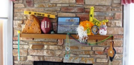 La Petite and I gathered everything we could find and arranged it artfully on the fireplace mantel. The cheesehead has two autographs; Mark Tauscher and Gilbert Brown. Mardi Gras beads on the right are from Super Bowl XXXI; I hope they’ll bring good luck to XLV!!