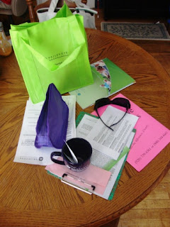 Paperwork. I felt like I was signing as many documents as I did when we refinanced the mortgage. This time it isn’t the house at stake; it’s my vision. There was so much to browse that they gave me a tote bag to carry it all home! Sneaky advertising for the clinic, I guess; tote bag, sunglasses, and coffee mug.