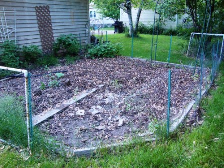 Chuck repurposed the old fence boards (see below left) to be a walkway in the new plot.