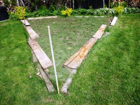 We covered the area with cardboard and newspaper last fall, outlined it with a few posts and spare boards, and let nature do its job over the winter.